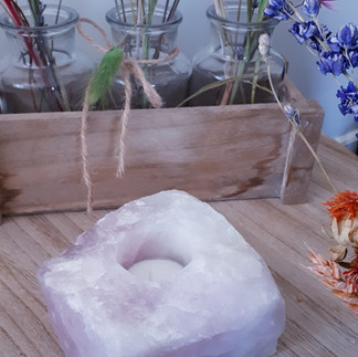 And last but not least... een prachtige Rozenkwarts waxinelichthouder of een vanille geurkaars met een Rozenkwarts edelsteentje erin!